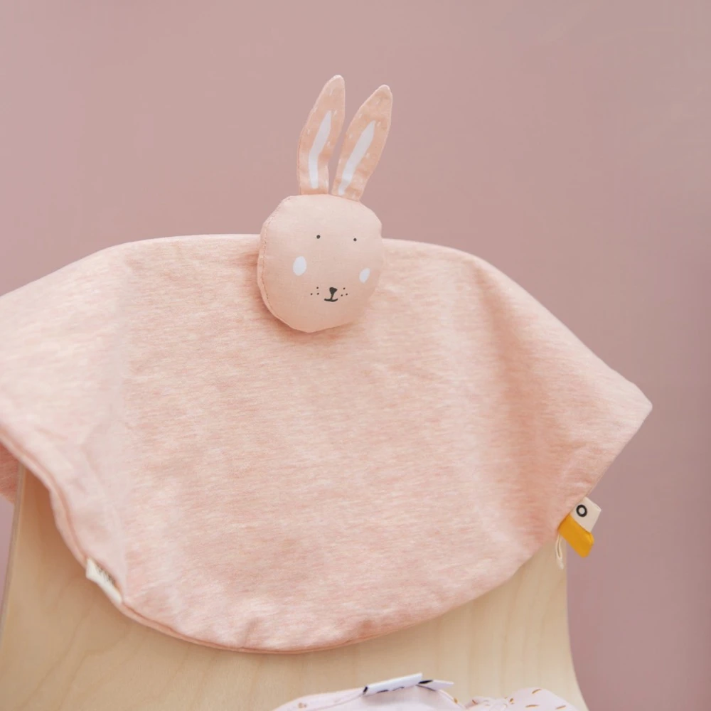 A soft and friendly face to share all your little one’s first adventures with. The little knot can hold your little one’s pacifier, so it never gets lost.