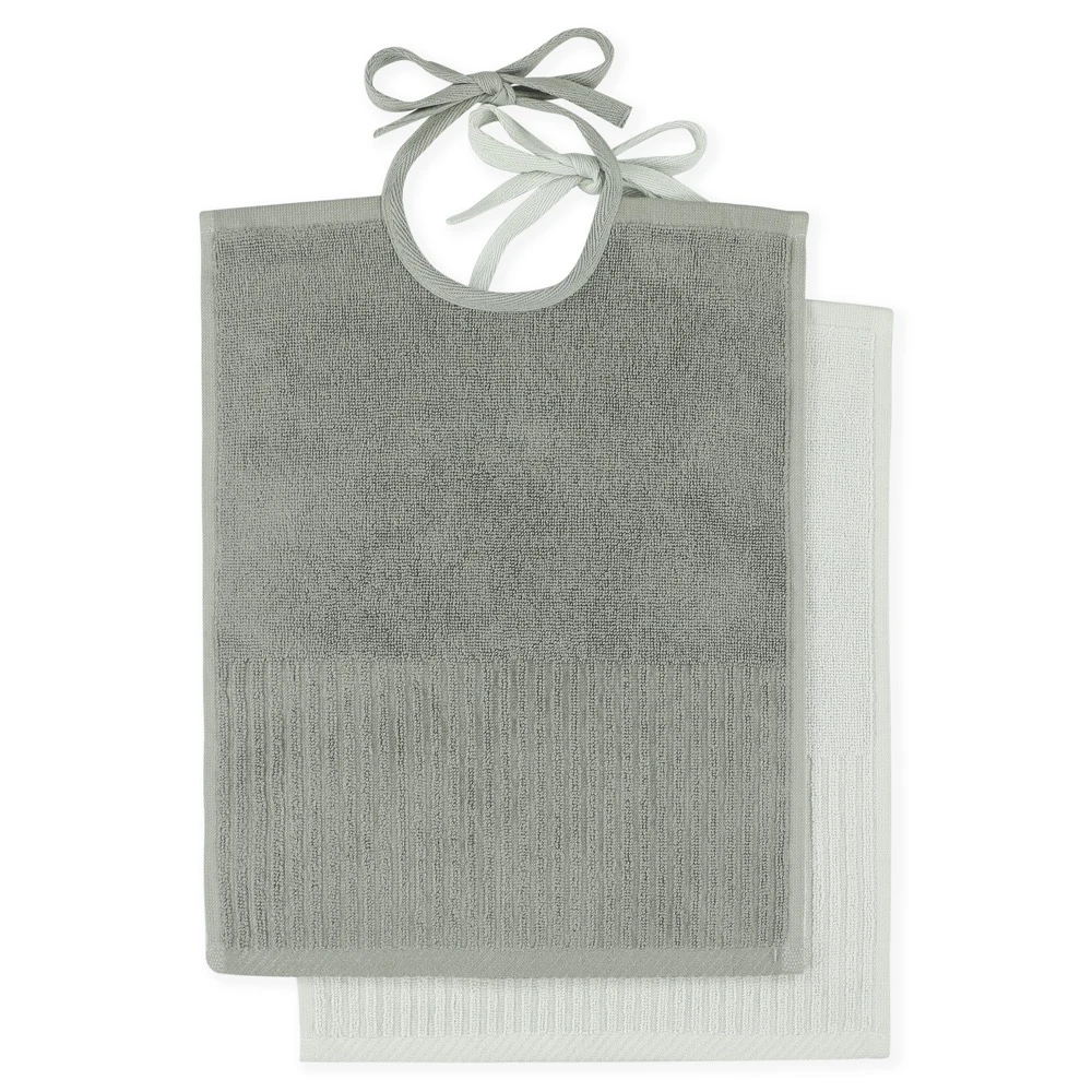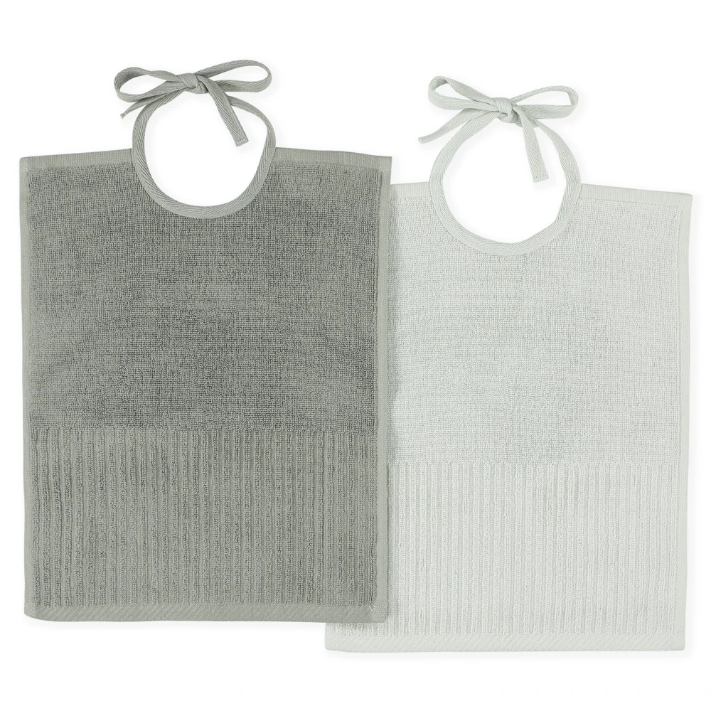 The bib XL is a large, soft bib made of organic cotton that absorbs well. The subtle stripes in the design of the bib and the wonderful colour combinations are a great look. Each set contains 2 bibs in a different colour. The bibs have strings that easily tie around the neck of your little one before a cosy meal. The bib is suitable for both babies and toddlers. To complete the look, you can combine these bibs with our tableware made of plant-based plastics. The colours of the bibs and the range of tableware are perfectly in tune, creating a beautiful table setting. There are 4 sets in different colours available.