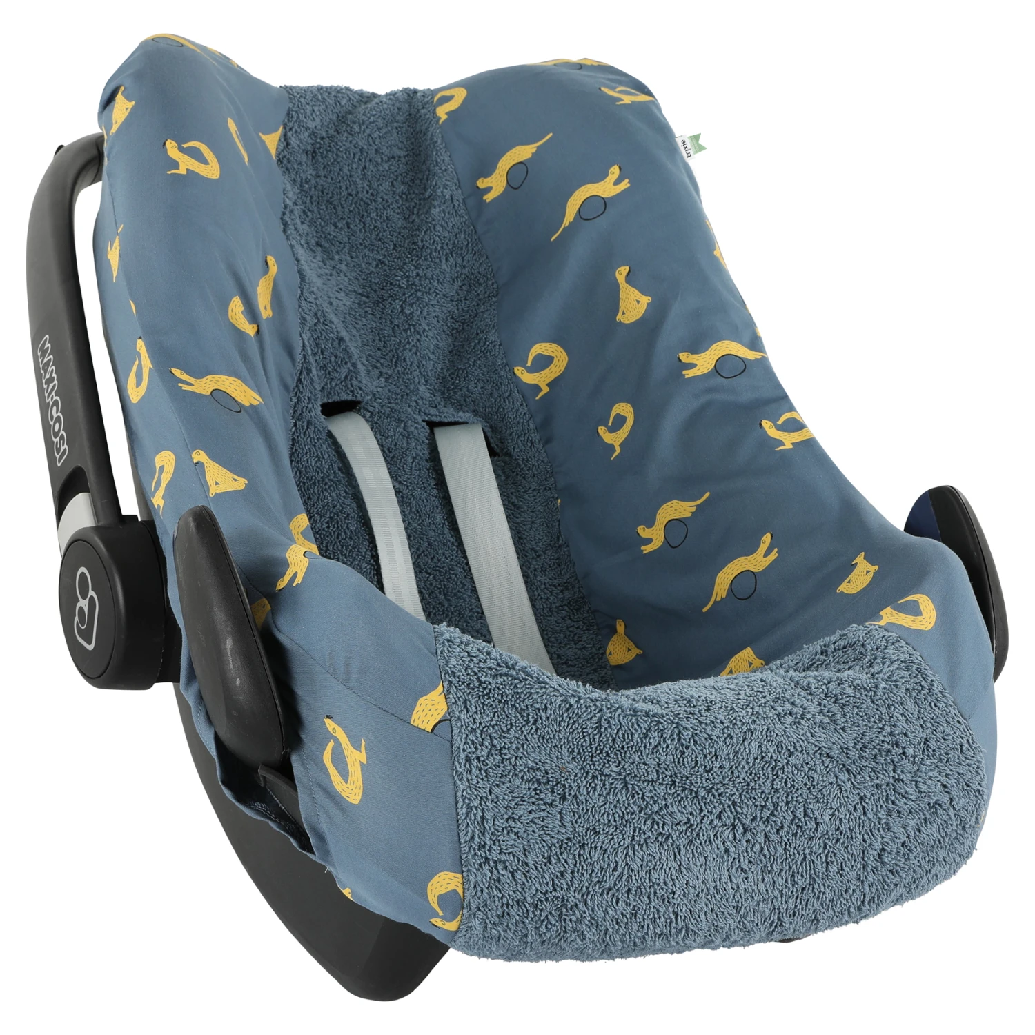 Car seat cover for the Maxi-Cose Pebbly by Trixie in collection Whippy Weasel. This car seat cover for the Maxi-Cosi Pebble gives your car seat an original look and partially consists of terry, which cools down and absorbs well in warmer months.