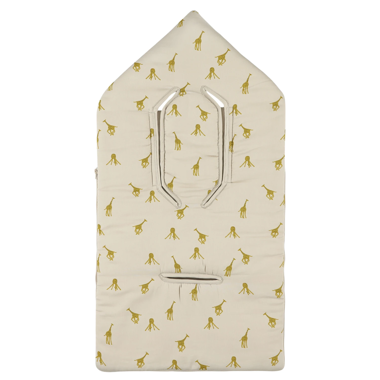 Footmuff by Trixie in collection Groovy Giraffe. This footmuff is perfect to keep your kid warm and snuggly in the car seat for cozy rides or stroller for cold winter walks. It is safety five-point-harness compatible.