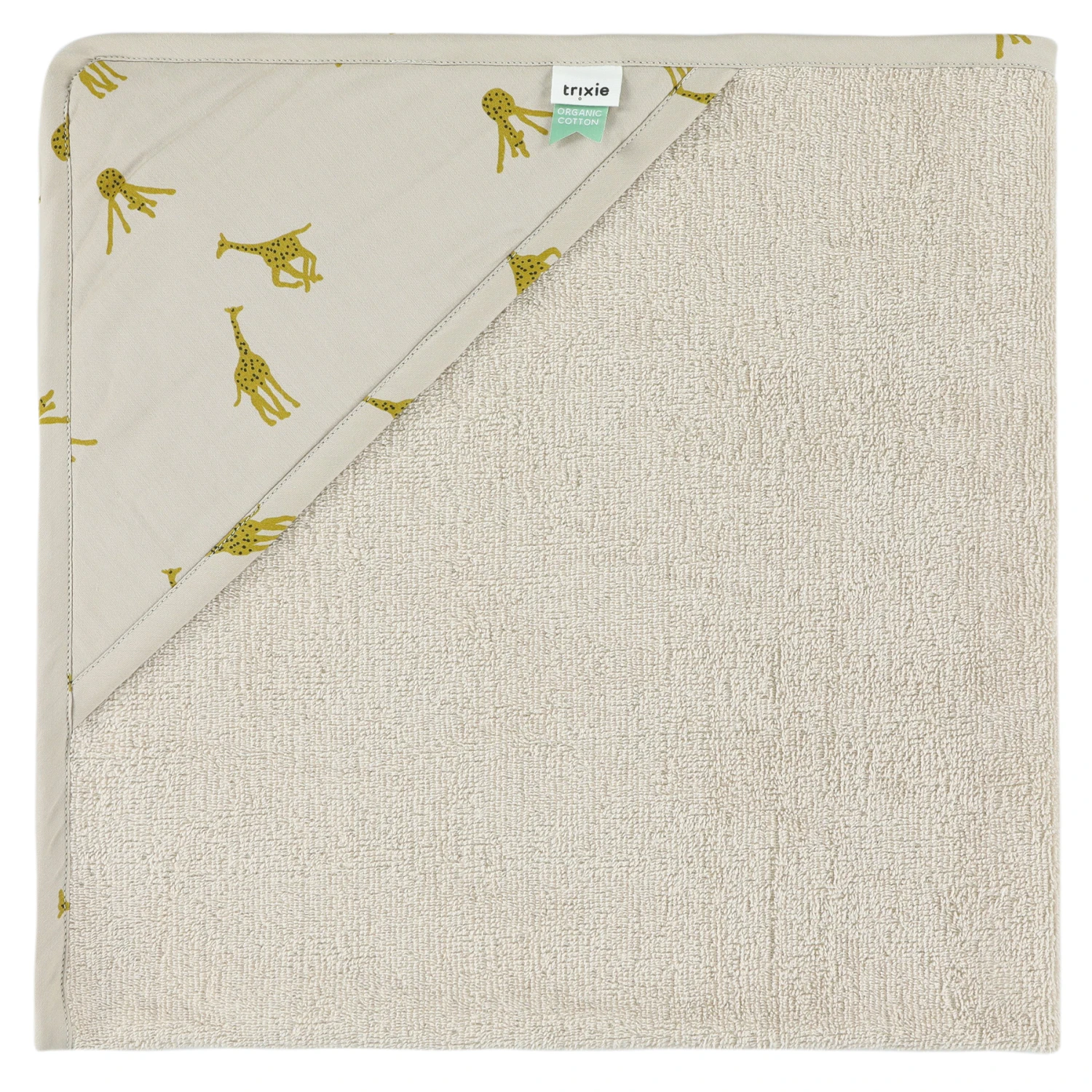 Hooded towel by Trixie in collection Groovy Giraffe, in terry. Perfect to wrap your baby after bath time and prolong this bonding moment.