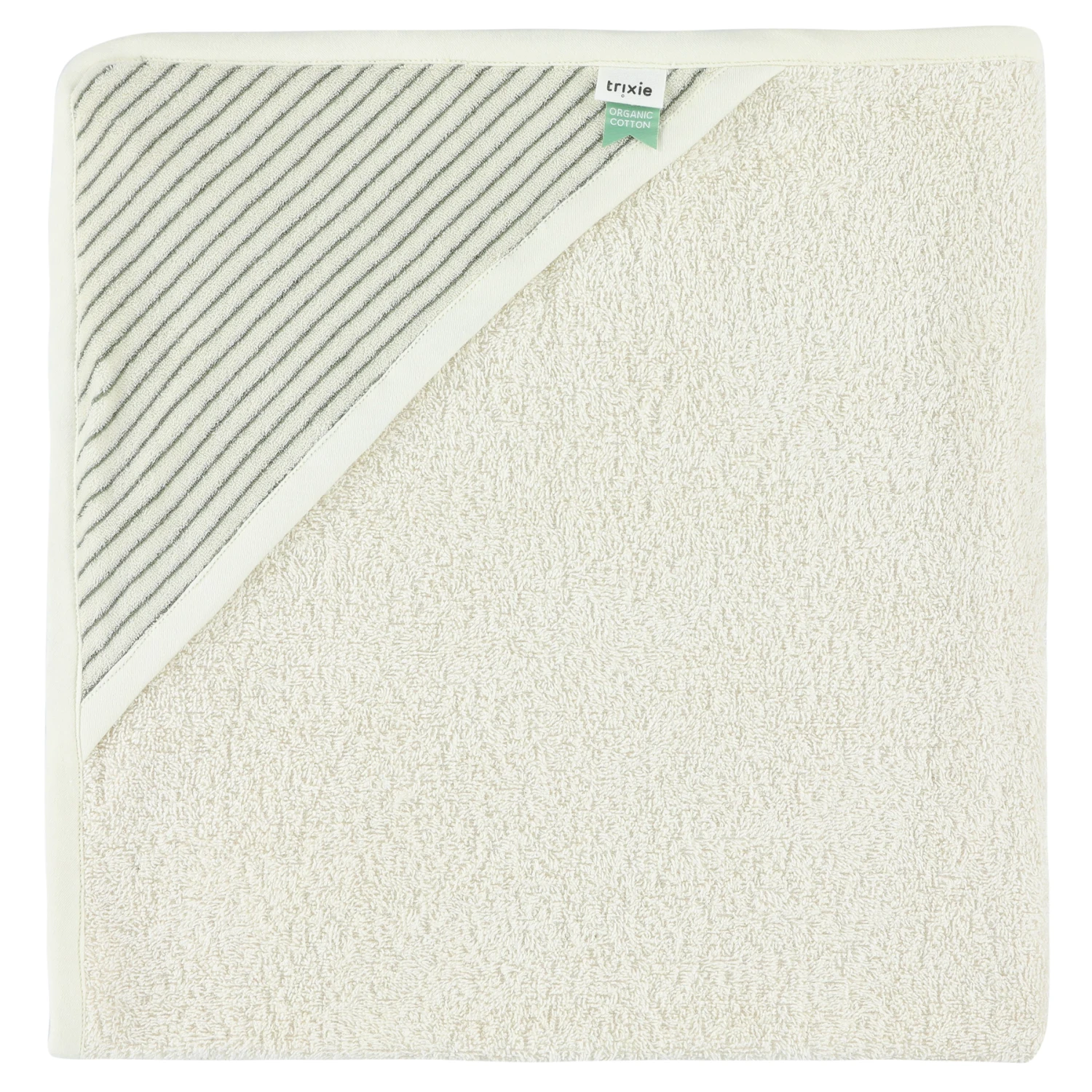 Hooded towel by Trixie in collection Stripes Olive, in terry. Perfect to wrap your baby after bath time and prolong this bonding moment.