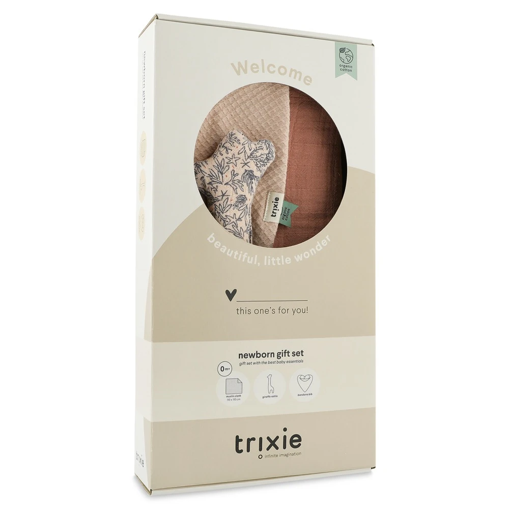 This beautiful newborn giftbox by Trixie is the perfect gift for every little one. The giftset contains a handy and cool bandana bib, a fun rattle in the shape of a giraffe, and a soft, cotton blanket to keep babies warm. It’s the perfect set to welcome a newborn into this world!