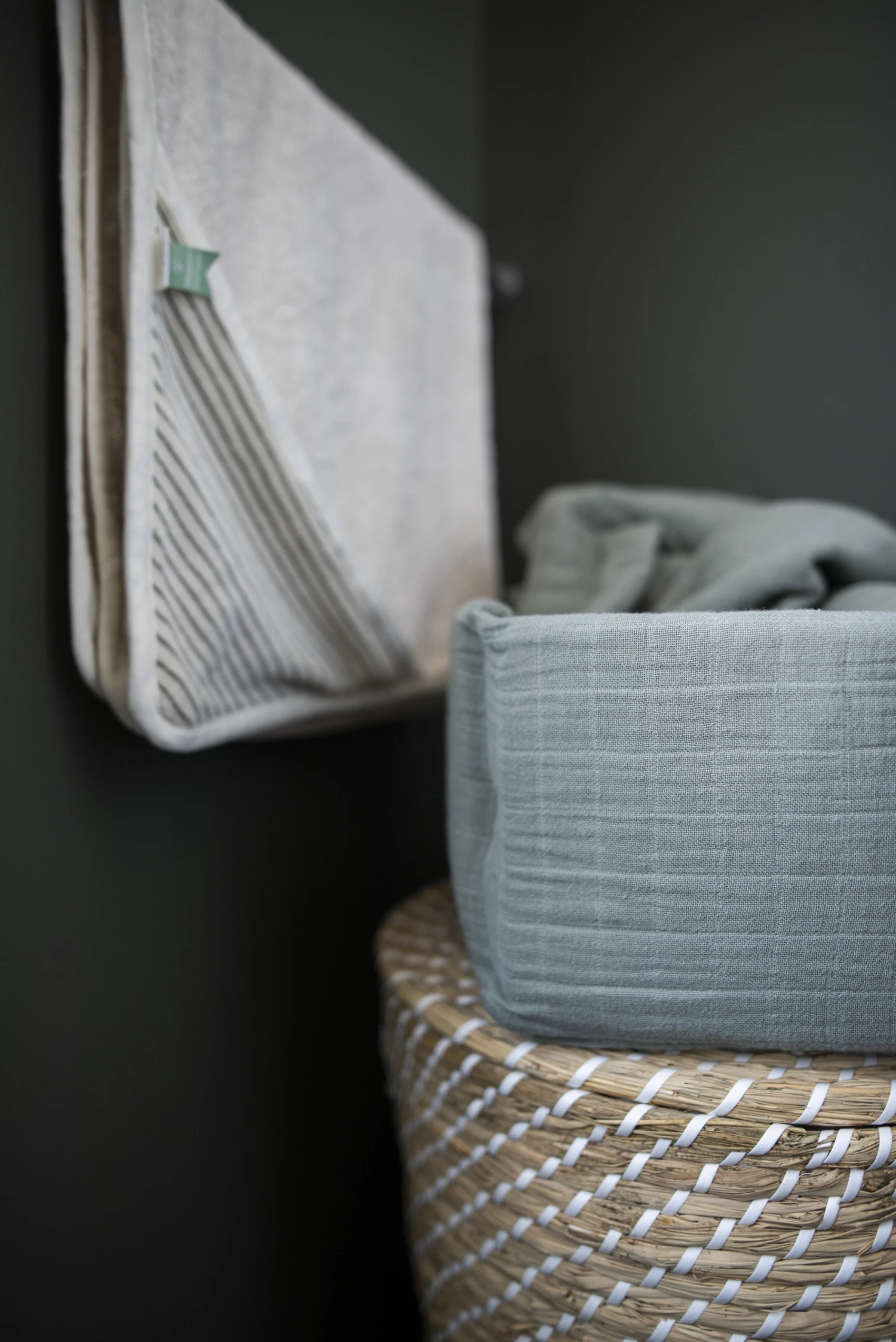 Nursery basket by Trixie in collection Bliss. This pretty nursery basket allows you to stow away all your baby care products or small toys in a neat and organized way. The basket is standing up nicely thanks to a firm mousse. On the inside, some elastic straps offer more storage options.